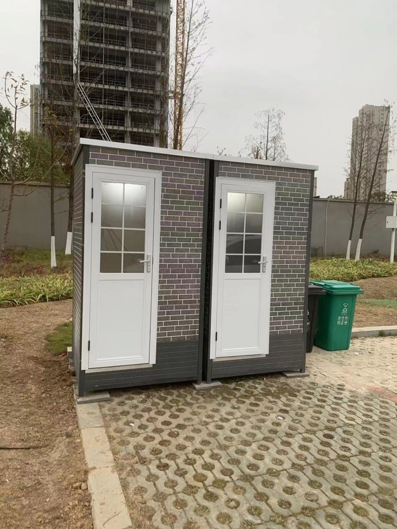 拼裝廁所;在廠里做好各個(gè)廁所部件,再到現(xiàn)場(chǎng)組裝在一齊,適合不易運(yùn)輸?shù)拇笮蛶_@座箱式廁所,女廁5個(gè)蹲位內(nèi)配工具間,男廁2個(gè)蹲位+2小便斗,第三衛(wèi)生間由殘疾馬桶、助力洗手盆和兒童馬桶、兒童洗手盆外加?jì)雰号_(tái)等設(shè)施。廁所前后有窗,通風(fēng)采光,前部走廊裝有屋檐,防雨防曬。此廁所位于公路綠道邊,整體大氣,功能齊全,造型美觀,是一道難得的靚麗景觀!